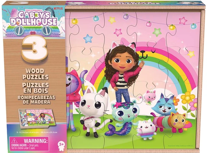 Пазл дерев’яний 3 в 1 Spin Master Ляльковий будиночок Габбі 21х28 см 3 пазли по 24 елементи (SM33638/6066549)