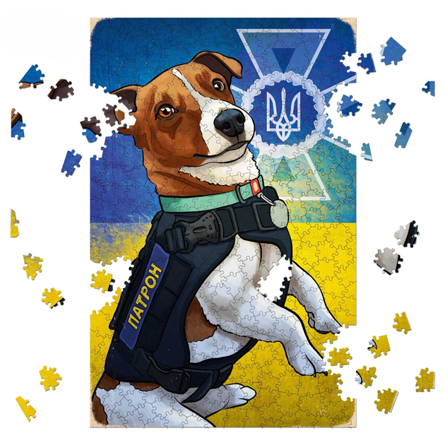 Пазл дерев'яний Пес Патрон 560 деталей 5838 см патріотичний з прапором України