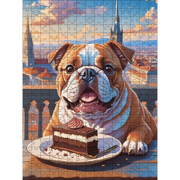 Класичний дерев'яний пазл Бульдог їсть тістечко XL