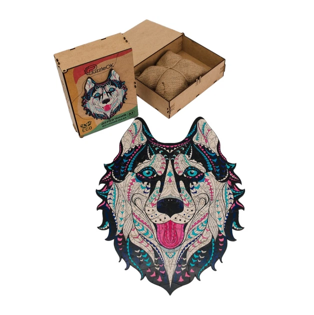 Фігурний Дерев'яний Пазл A3 "сніжний Хаскі" Puza3-03112, 123 Деталі (316506)