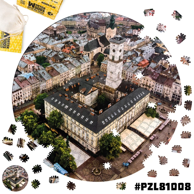 Дерев'яні пазли Wortex Woods Площа Ринок у Львові 40х40 см 316 елементи амеби PZL81008M
