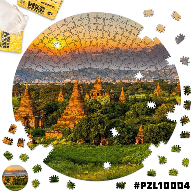Дерев'яні пазли Wortex Woods Стародавні храми Багану 40х40 см 316 елементи амеби PZL10004M