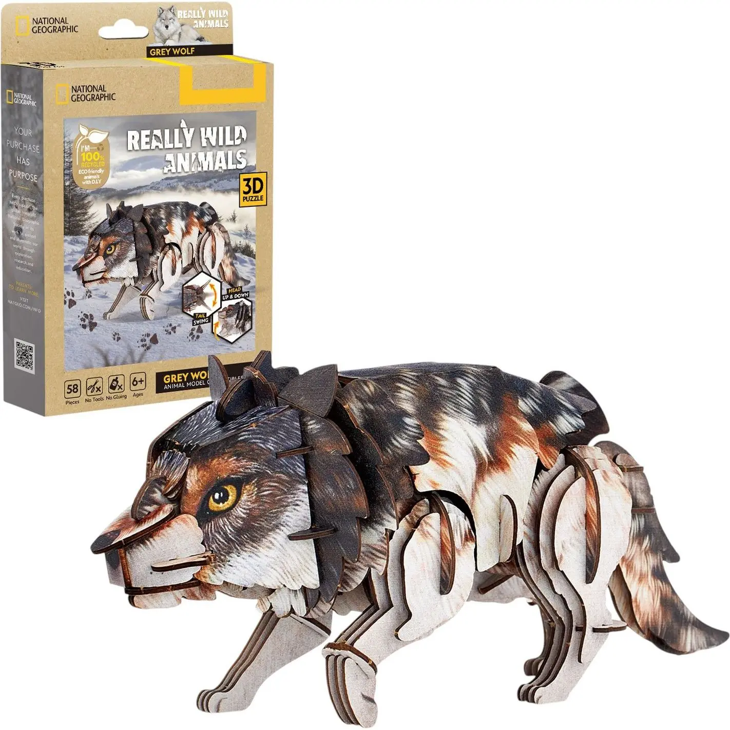 Тривимірна головоломка-конструктор CubicFun National Geographic Дикі тварини Сірий вовк 58 елементів (DS1180h)