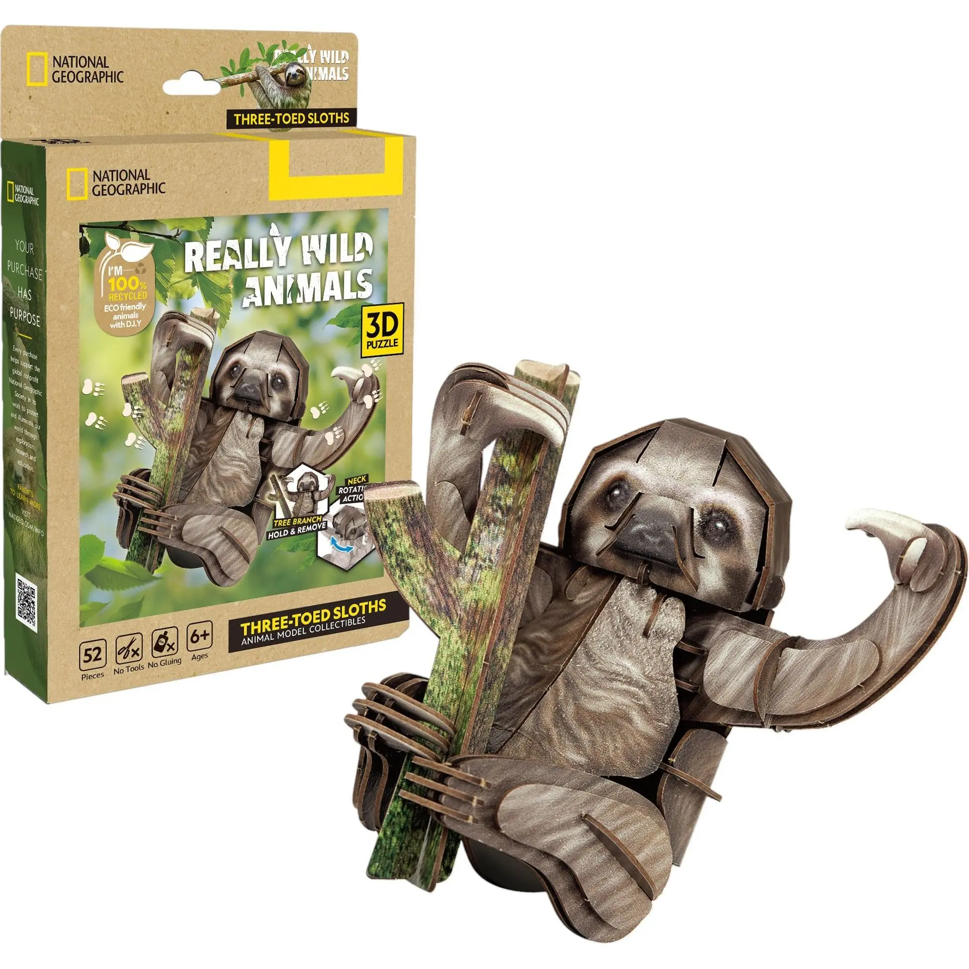 Тривимірна головоломка-конструктор CubicFun National Geographic Дикі тварини Лінивець 52 елемента (DS1175h)