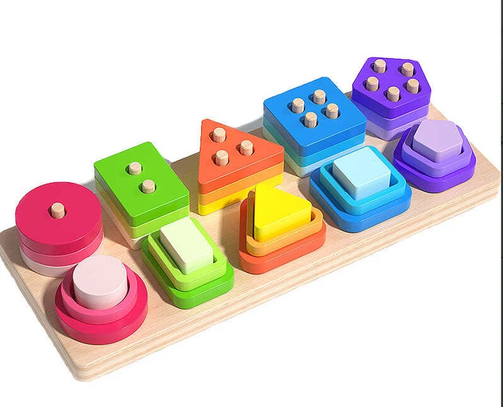 Дерев'яний геометричний сортер C 74023 31.5х12.5х1.2 см, геометричні фігури з різною кількістю отворів, в коробці