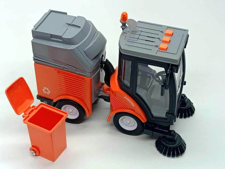Іграшкова прибиральна машина — інерційна, зі світлом і звуком, помаранчева, 20 см