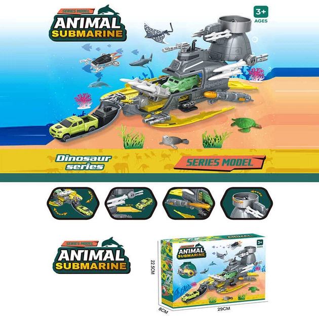 Підводна лодка SY 9941 “Субмарина”, 6 фігурок тварин, розкладається, механічний запускач, 2 гармати, снаряди, рухомі елемент