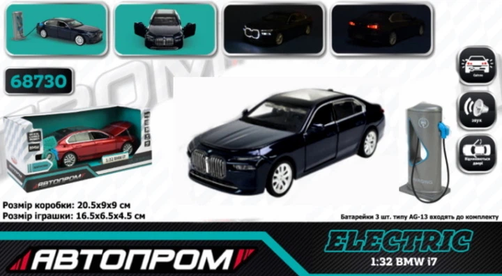 Машина АВТОПРОМ 1:32 BMW I7, на батарейках 68730чорна
