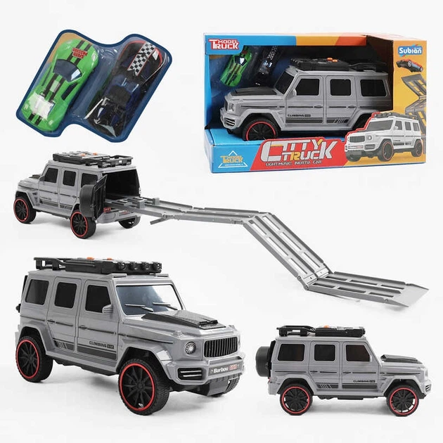 Джип музичний S 977-121 Штрих = 10619 СІРІЙ, звук, світло, інерція, машинки в комплекті, в коробці