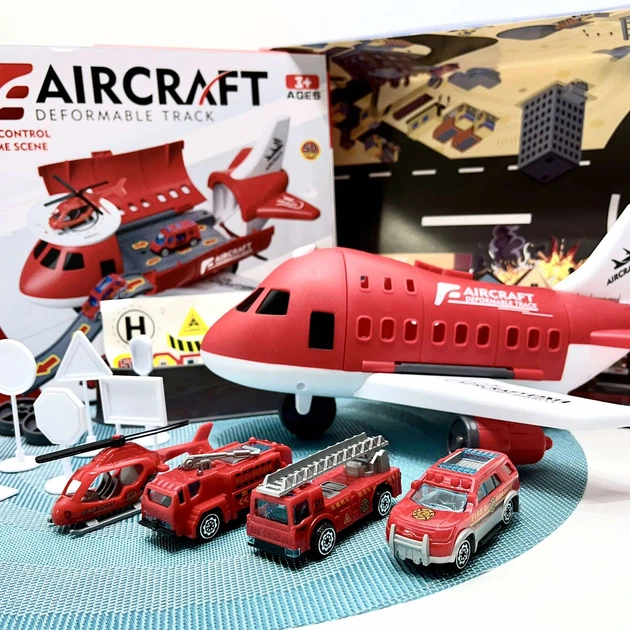Літак паркування з машинками 4шт з музикою Червоний (8825A)