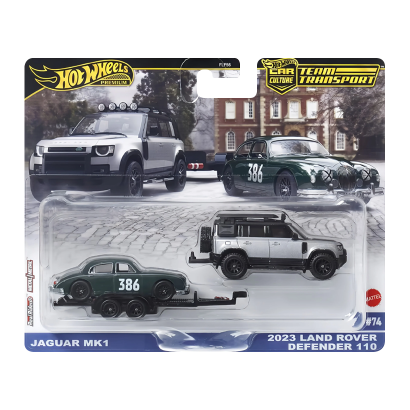 Машинка Premium 2шт Hot Wheels 2023 Land Rover Defender 110 / Jaguar Mk1 та Транспортер Rally Trailer Team Transport 1:64 JB