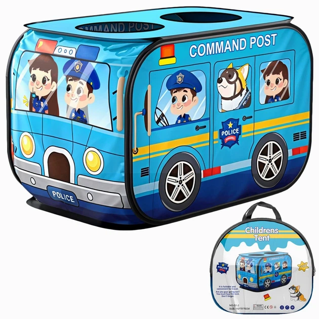 Ігровий намет для дітей 110х70х70см текстиль блакитна поліцейська машина для приміщень від 2 років