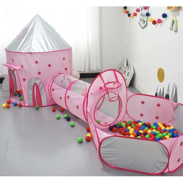 Дитячий ігровий будиночок-намет "Замок" 3в1 з тунелем та басейном під кульки рожева