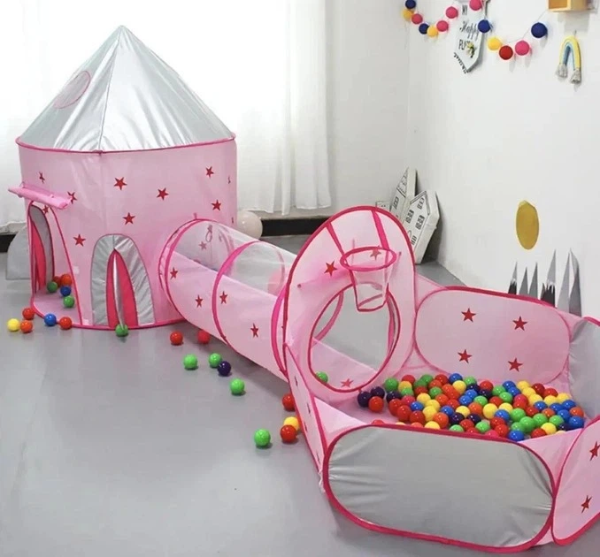 Дитячий ігровий намет замок 3 в 1 з тунелем та басейном для дітей будиночок
