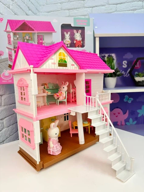 Будиночок для флоксових іграшок двоповерховий із меблями та зайчиками