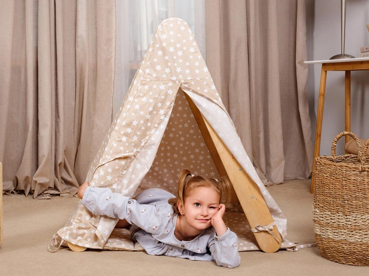 Намет-накриття Goodevas дитячий бежевий з килимком для трикутної драбини (E303)