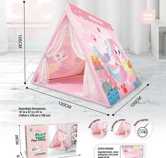 Дитячий ігровий намет “Русалочка”, 5888-12, 120х120х105 см з фіранками та пластиковим каркасом, рожевий