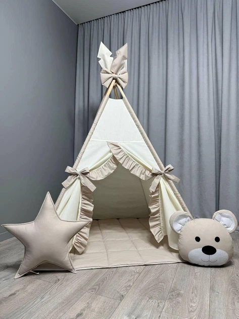 Дитячий вігвам Бежевий будиночок 1 зі стьобаним килимком Повний комплект 0246