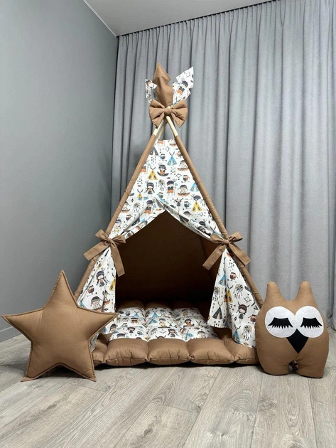 Вігвам дитячий Індіанці 3 на коричневому з матрасиком БОНБОН Повний комплект 0371