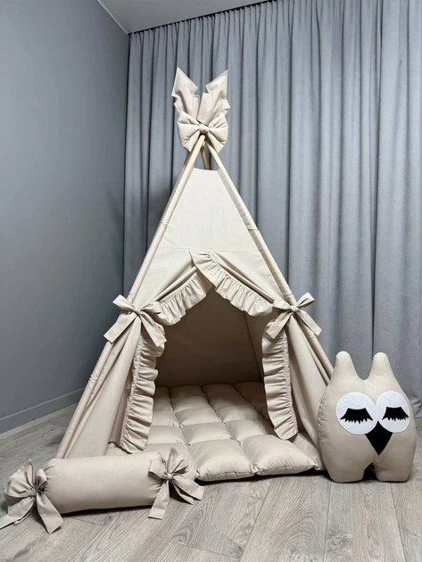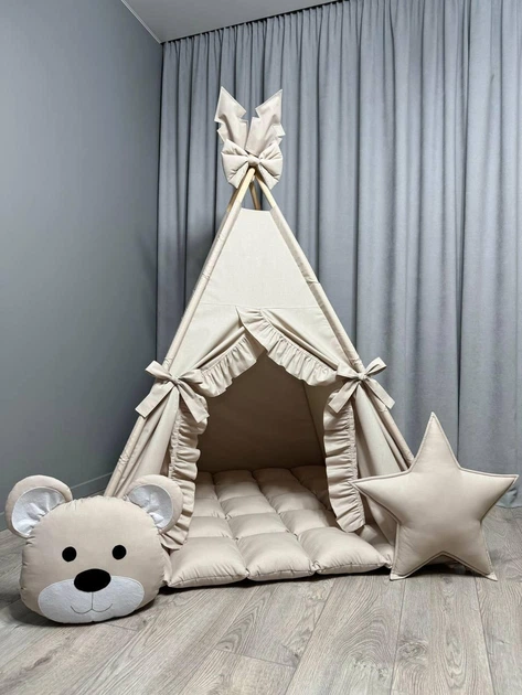 Дитячий вігвам для дівчинки Бежевий будиночок 1 з матрасиком БОНБОН Повний комплект 0001