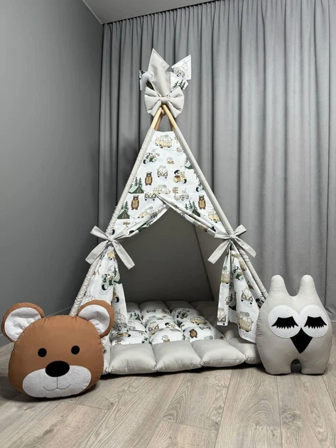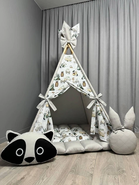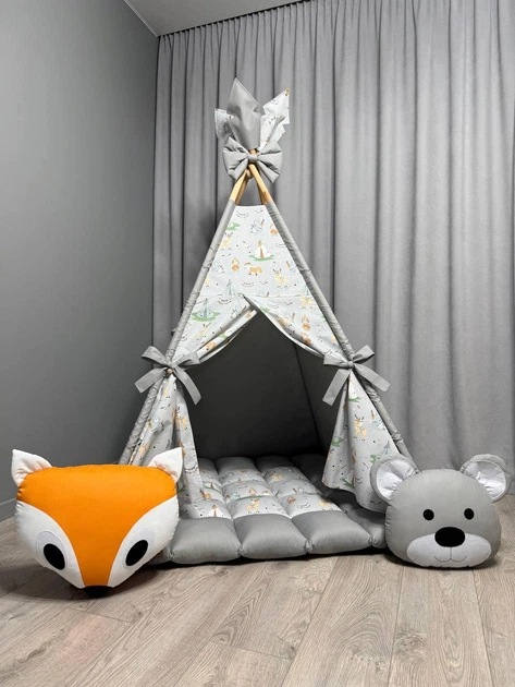 Вігвам Звірята на сірому 3 з матрасиком БОНБОН Повний комплект 0815