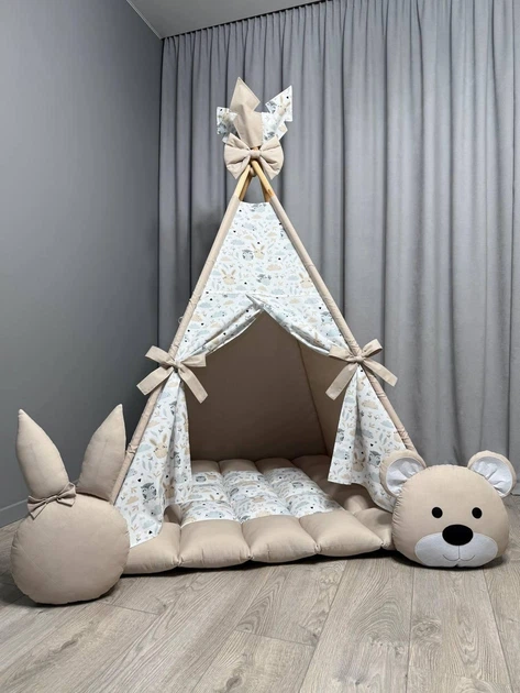 Вігвам для дітей Совенята та зайчики 7 з матрасиком БОНБОН Повний комплект 0845