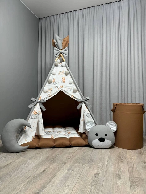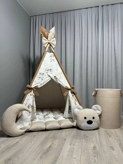 Дитячий вігвам Ведмежа у снах 2 з матрасиком БОНБОН та кошиком для іграшок Повний комплект 0498