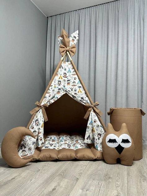 Дитячий вігвам Індіанці 2 на коричневому з матрасиком БОНБОН та кошиком для іграшок Повний комплект 0370