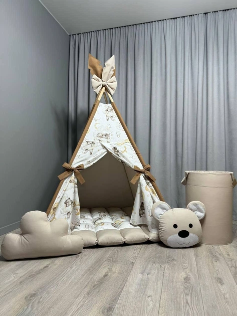 Вігвам Ведмежа у снах 6 з матрасиком БОНБОН та кошиком для іграшок Повний комплект 0506