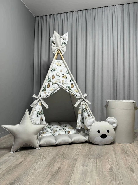 Дитячий вігвам -намет Ведмежа у снах 7 з матрасиком БОНБОН та кошиком для іграшок Повний комплект 0508