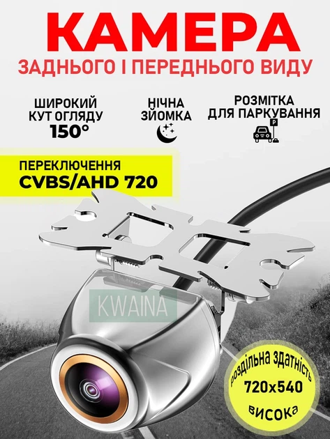 Металева камера заднього виду HD - широкий кут огляду 170°, кольорове зображення, універсальне кріплення, корпус із цинковог