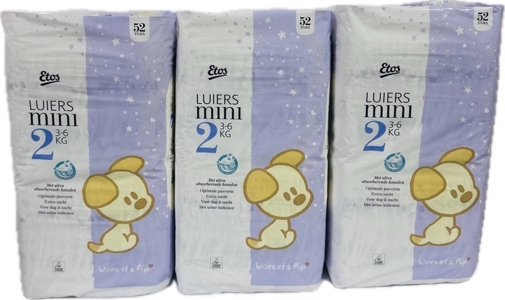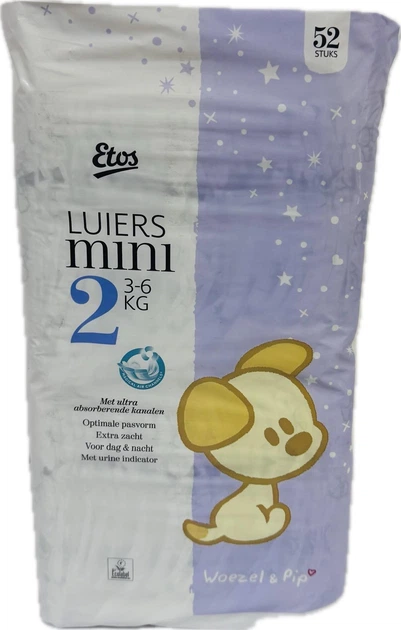 Екологічні підгузки Etos mini 2 розміру 3-6 кг, 52 штук