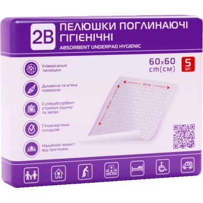 Пелюшки для малюків 2B Поглинальні 60х60 см 5 шт. (7640341150878)