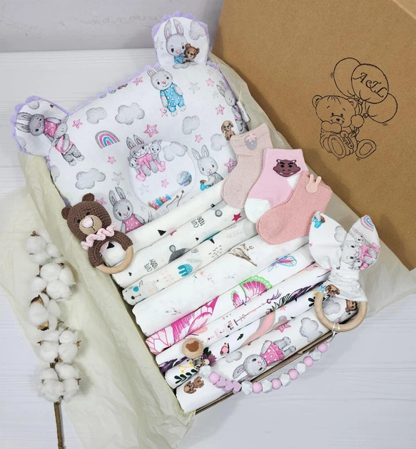 Набір для новонародженого: подушка, пелюшки і іграшки з пледом a.l.babybox Мілк 2