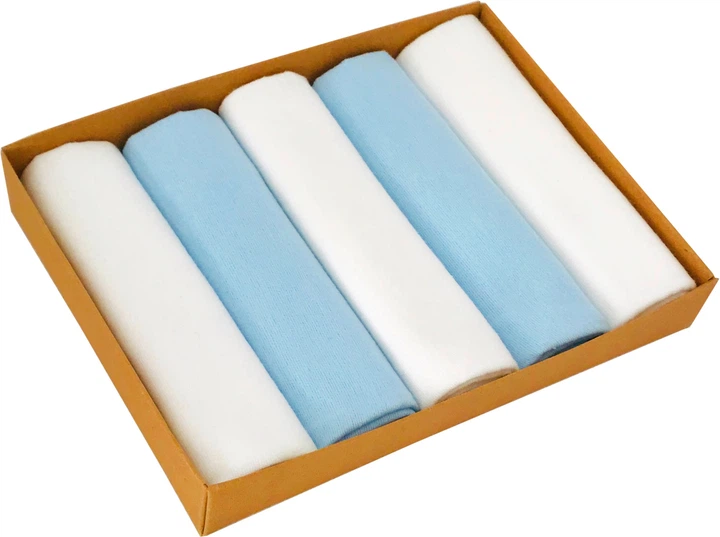 Набір дитячих фланелевих міні пелюшок-рушників BabySoon Білі та блакитні 30х35 см 5 шт. (ФП-13)