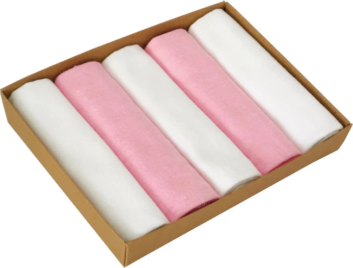 Набір дитячих фланелевих міні пелюшок-рушників BabySoon Білі та рожеві 30х35 см 5 шт. (ПФ-12)
