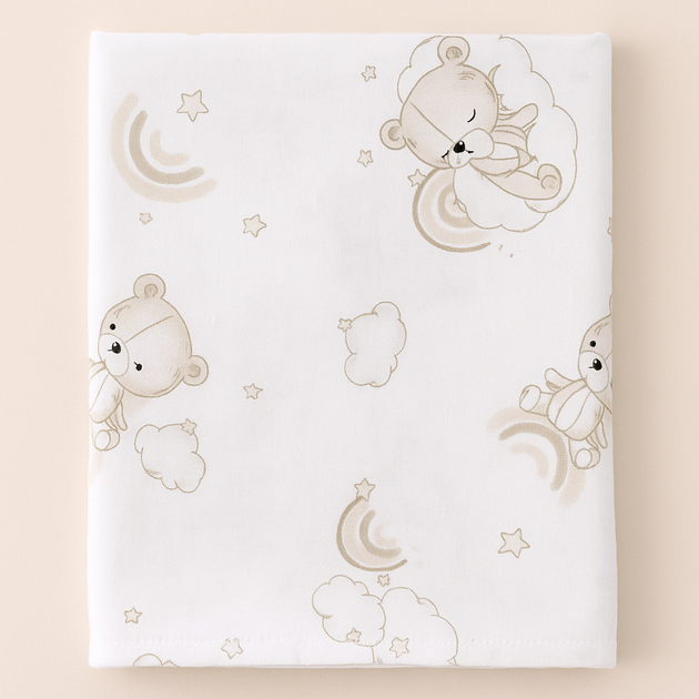 Ситцева пелюшка для малюків 100*80 см бавовна в пологовий будинок BST бежеві ведмедики білий