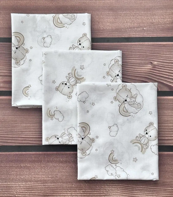 Пелюшки дитячі легкі ситцеві 3 шт. розмір 100*80 см бавовна в пологовий будинок BST бежеві ведмедики