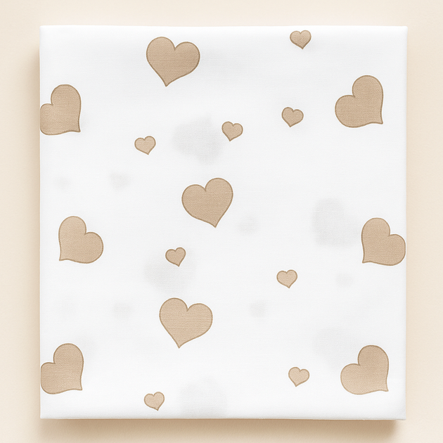 Ситцева пелюшка для малюків 110*100 см бавовна в пологовий будинок BST бежеві серця білий