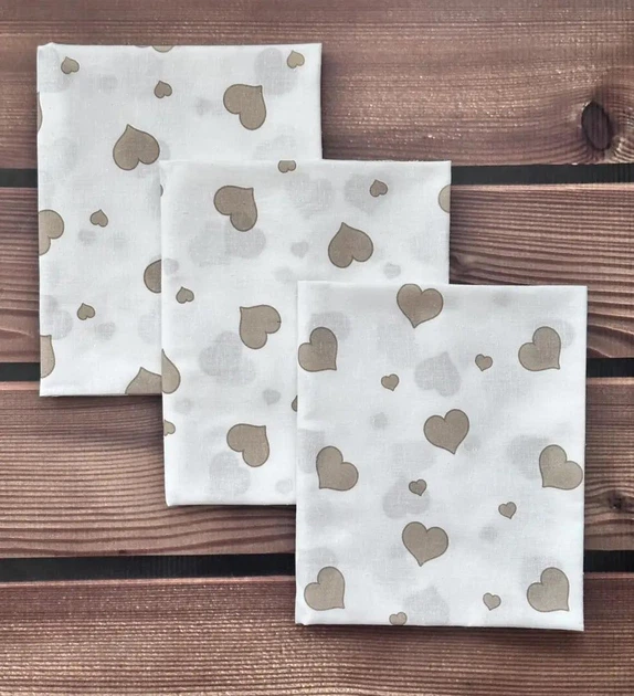 Пелюшки дитячі легкі ситцеві 3 шт. розмір 100*110 см бавовна в пологовий будинок BST бежеві серця білий