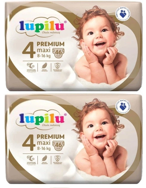 Підгузники Lupilu Premium Maxi Розмір 4, Вага 8-16 кг, 92 шт