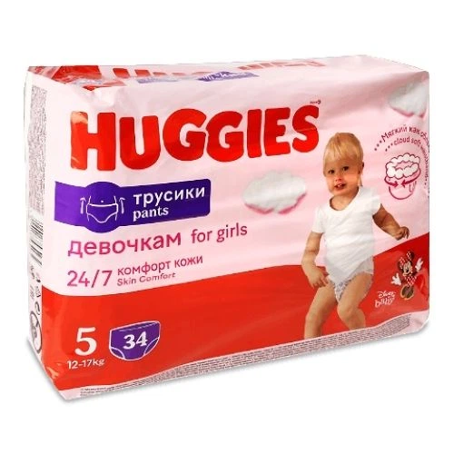 Підгузники-трусики дитячі Huggies №5 12-17 кг Дівчинка 34 шт.