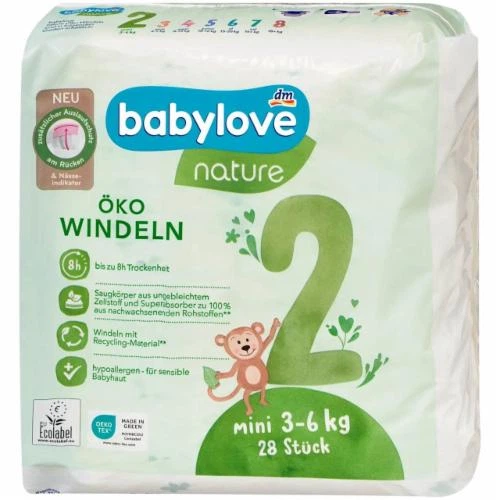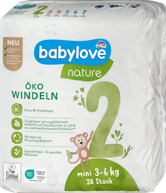 Підгузки дитячі Babylove Nature, 2 Mini (3-6 kg) - (28 шт.)