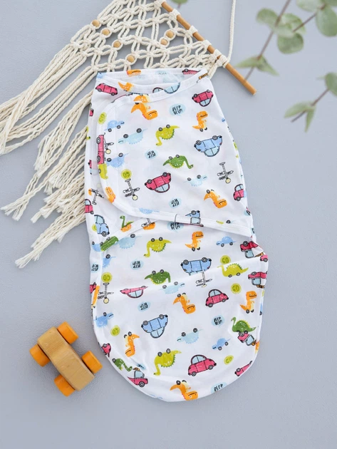 Пелюшка кокон на липучці для новонароджених Автомобіль 56-62 біла з малюнком