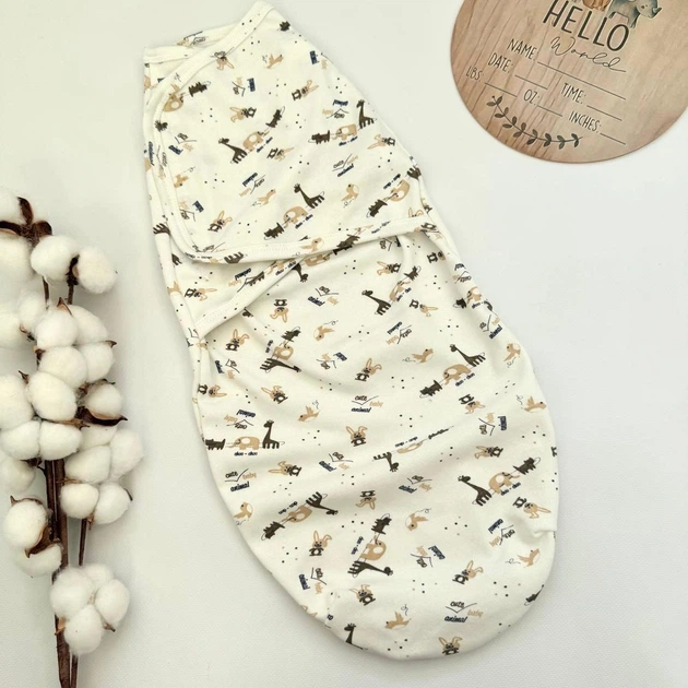 Пелюшка кокон для новонароджених на липучці 56-62 см інтерлок молочний Звірята