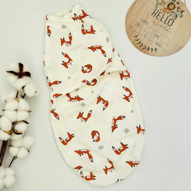 Пелюшка кокон для новонароджених на липучці 56-62 см інтерлок молочний Лисята
