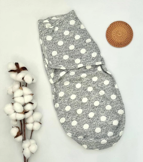 Пелюшка кокон для новонароджених на липучці 56-62 см з інтерлоку Сіра в горох