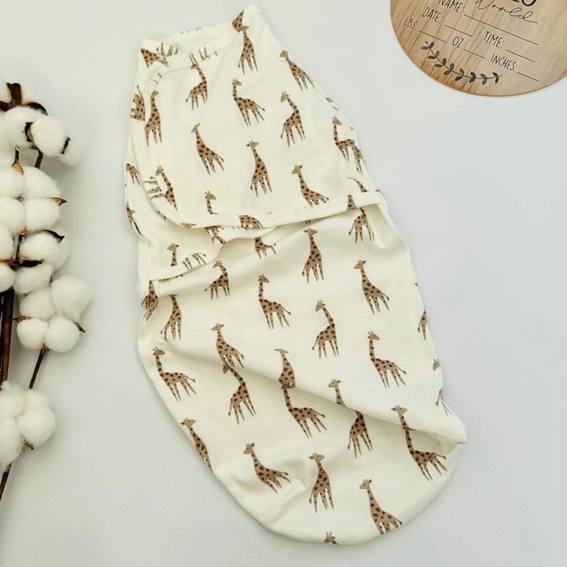 Пелюшка кокон для новонароджених на липучці 56-62 см інтерлок молочний Жираф