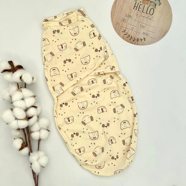 Пелюшка кокон для новонароджених на липучці 56-62 см інтерлок бежевий Звірята
