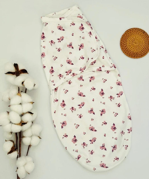 Пелюшка кокон для новонароджених на липучці 56-62 см інтерлок білий Квіти